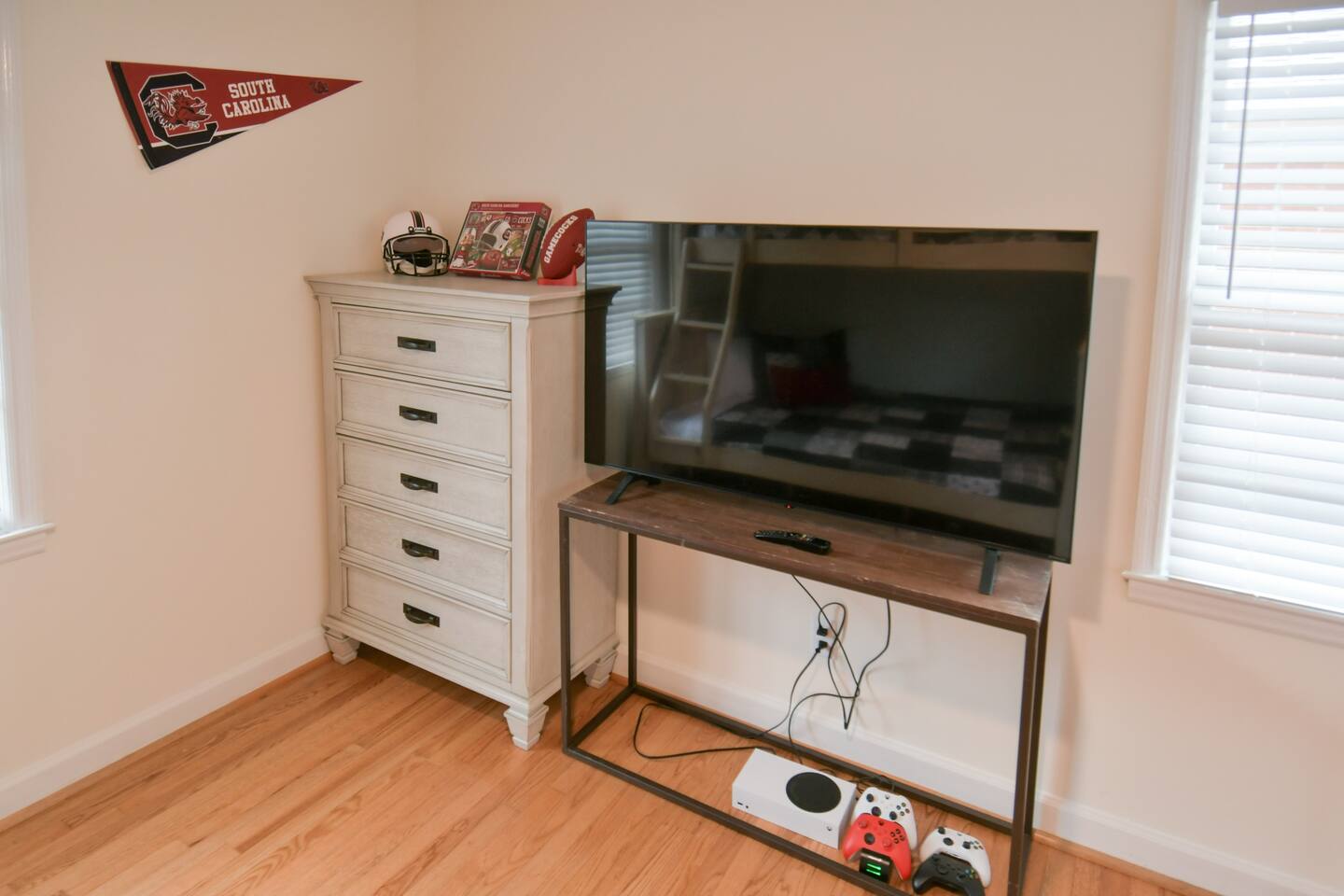★ YOUR ALL-SEASON ESCAPE AWAITS ★ Discover the tranquility of 4306 Pine Forest in Columbia, South Carolina – your ideal refuge from the demands of everyday life. This captivating home offers a serene haven for you and your loved ones to savor all that Columbia's historic charm has to offer. No matter the time of year, this vacation rental promises an exquisite retreat, boasting an array of amenities: ✔ Expansive Gated Yard ✔ Arcade with 14 Games, Including Street Fighter ✔ Gas BBQ Grill ✔ Alfresco Dining Area ✔ Beautiful Hardwood Floors ✔ Serene, Peaceful Neighborhood Setting ✔ In-Unit Washer & Dryer ✔ Spacious Stainless-Steel Refrigerator & Freezer ✔ Luxurious Bedding on Plush Mattresses ✔ Fully Stocked Kitchen ✔ Stylish Wet Bar in Living Area ✔ Contemporary Interior Design ✔ Inviting Fireplace ✔ High-Speed WiFi ✔ Kids-Friendly Amenities: Pack N Play, High Chair, Toys ✔ Ping Pong Table ✔ Free Arcade with 14 Games ✔ Flatscreen TVs ✔ Central Air Conditioning ★ PREMIUM LOCATION IN NORTHERN COLUMBIA, SC ★ Irrespective of your preferred season, you'll adore your stay in this idyllic retreat. Nestled in the Highland Park neighborhood of Columbia, this peaceful property places you just moments away from: ✢ Fort Jackson ✢ University of South Carolina ✢ Downtown Columbia ✢ Charming Local Eateries and Shops ✢ Convenient Markets and Grocery Stores ✢ Nearby Golf Courses Galore ✢ Riverbanks Zoo & Garden ✢ Columbia Museum of Art ✢ Abundant Hiking Trails ✢ Picturesque Lakes and Natural Beauty ✢ And So Much More! ★ 3 BEDROOMS & 2 BATHROOMS FOR FRIENDS & FAMILY ★ This charming hideaway boasts 3 bedrooms with 4 sumptuous beds, a pull-out sofa bed, and 2 recently updated bathrooms, comfortably accommodating up to 10 guests. Revel in the master bathroom's walk-in shower, while the guest bathroom features a stunning shower/tub combo. ★ SPACIOUS, RECENTLY RENOVATED LIVING SPACE ★ Step into a home that has undergone an exquisite transformation, radiating luxury at every turn. With its ultramodern decor, inviting bedrooms, sprawling backyard, and state-of-the-art kitchen, this sanctuary will tempt you to never leave your peaceful oasis. ★ OPEN-CONCEPT LAYOUT FLOODED WITH NATURAL LIGHT ★ This South Columbia residence is immaculately maintained, featuring contemporary, airy interiors throughout. Immerse yourself in the meticulous attention to detail present in every corner of this abode. The abundant natural light streaming in invites you to relax and unwind after a day exploring this beautiful city. ★ IMMACULATELY SANITIZED & SPOTLESS ★ Rest assured, this property is thoroughly cleaned and sterilized after each guest stay, offering peace of mind. Plus, we provide 100% self-check-in for added convenience and safety. ★ PERFECT FOR FAMILY & FRIENDS OR A ROMANTIC ESCAPE ★ Whether you're seeking quality time with loved ones in the expansive backyard with panoramic views or planning a romantic retreat with your significant other, this secluded home caters to all types of vacationers. ★ UNRIVALED HOSPITALITY ★ Our commitment is to make your South Carolina vacation exceptional. We've gone the extra mile to ensure your stay is top-notch, providing essential amenities such as cleaning products, body soap, hangers, linens, extra pillows, an iron, washer/dryer, and a first aid kit. If you encounter any issues or have questions, don't hesitate to contact us anytime. Our dedicated guest service agents are on call to promptly assist you. Your comfort and enjoyment are our top priorities!